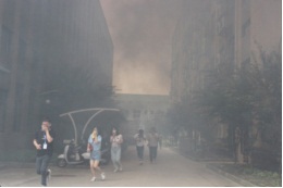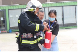 理論培訓剛結(jié)束,火災(zāi)報警響起,消防演練正式開始。在疏散引導小組的指引下,大家用濕巾捂口鼻,從消防通道井然有序迅速撤離“火災(zāi)現(xiàn)場”。隨后消防中隊快速抵達,對火災(zāi)進行了徹底“撲滅”。逃生演習結(jié)束后,消防中隊現(xiàn)場教學滅火器等消防器材的正確使用方法。