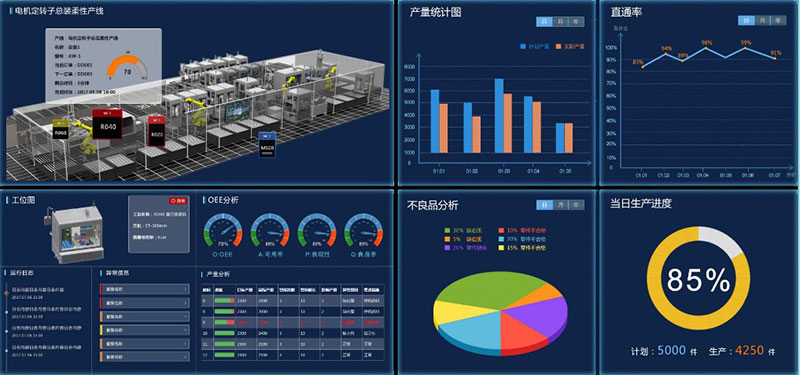 用于企業(yè)的目視化管理,可以把生產(chǎn)、品質(zhì)、設(shè)備、計(jì)劃、采購、倉庫等各種數(shù)據(jù)以圖形、表格、視頻甚至動(dòng)畫的模式直觀的展示出來,是企業(yè)信息化、透明化、提效管理的有力工具。本系統(tǒng)使用最前沿的技術(shù)HTML5,實(shí)現(xiàn)電視、手機(jī) 、電腦跨平臺(tái)的終端顯示,具有豐富的接口可輕松對(duì)接ERP、PLM、APS、MES、WMS、SRM、CRM、SCM等各種主流信息管理系統(tǒng)。