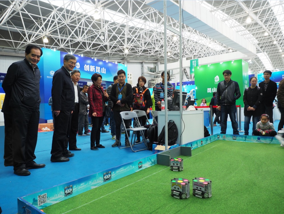 作為昆山智能制造展團的核心,浙江大學昆山創(chuàng)新中心此次共有小型足球機器人、迎賓機器人、在線式余(總)氯檢測儀、手持式分光輻射照度計、在線式超低量程濁度儀、便攜式綠色通道檢測儀等展品參展,充分體現(xiàn)了創(chuàng)新中心科研成果的轉(zhuǎn)化落地,尤其是小型足球機器人比賽,集科學性、創(chuàng)新性、表演性于一體,獲得了參觀者的廣泛關注。