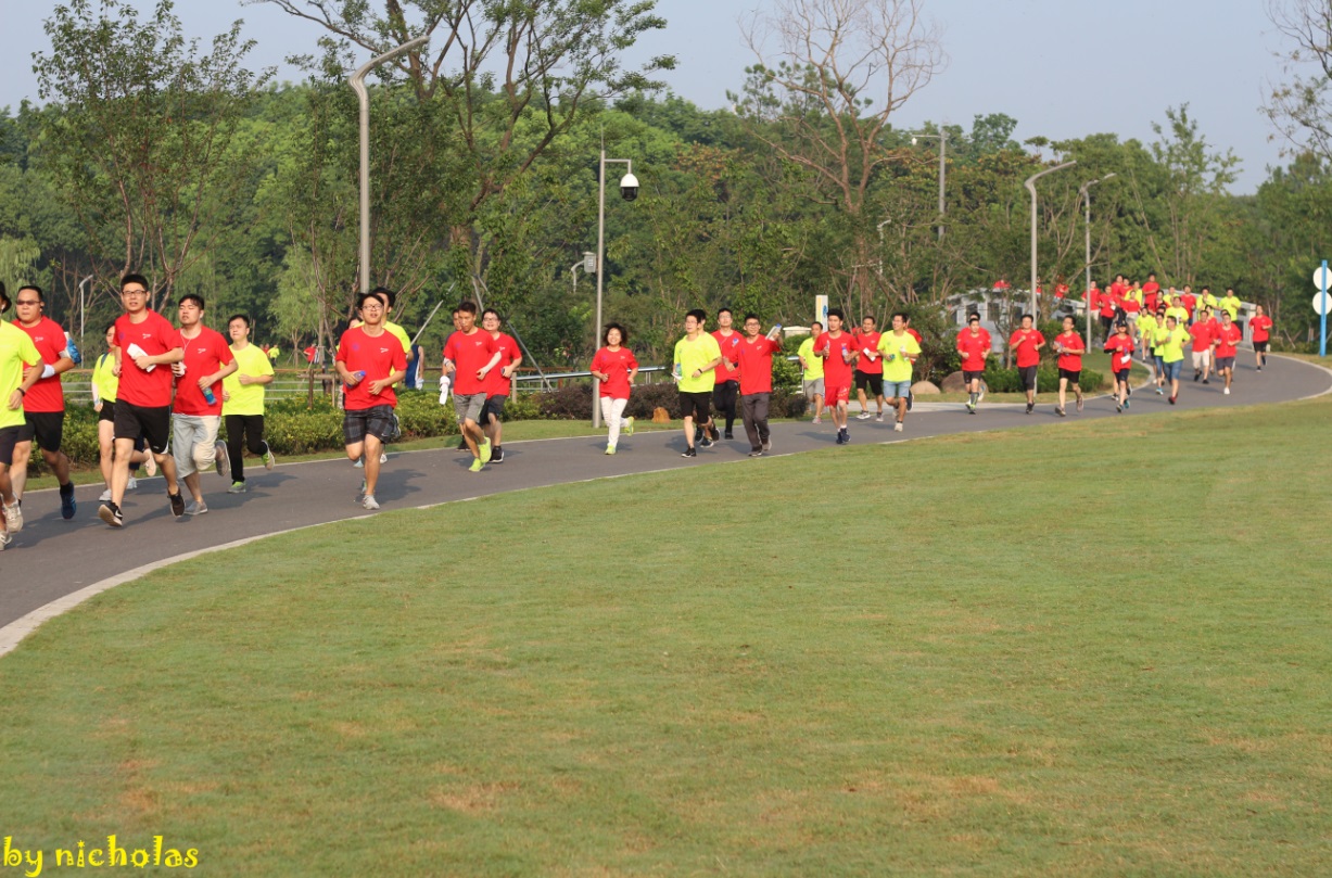 森林公園的早晨綠蔭環(huán)抱、空氣清新、陽光明媚。參跑人員沿園內(nèi)道路繞行一周。長跑健將一馬當(dāng)先,飛奔向前,個(gè)個(gè)生龍活虎。健走員工邁開大步,闊步向前,個(gè)個(gè)爭(zhēng)先。象征著創(chuàng)新中心這個(gè)蒸蒸日上的集體正在奔向美好的未來。