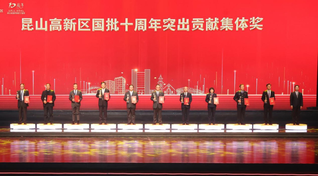 2020年11月27日,昆山高新區(qū)“國批”十周年高質(zhì)量發(fā)展匯報(bào)會(huì)在昆山文化藝術(shù)中心隆重舉行。昆山高新區(qū)開創(chuàng)了在縣級(jí)市設(shè)立國家級(jí)高新區(qū)的先河,近年來,各項(xiàng)事業(yè)發(fā)展迅猛,全國排名大幅提升,從2016年的63名提升為42名,其中,地區(qū)生產(chǎn)總值邁上900億臺(tái)階,高新技術(shù)產(chǎn)業(yè)產(chǎn)值占規(guī)上工業(yè)總產(chǎn)值比例達(dá)63%。匯報(bào)會(huì)上,昆山高新區(qū)對(duì)做出突出貢獻(xiàn)的單位和個(gè)人進(jìn)行了表彰,分別頒發(fā)了“國批”十周年“突出貢獻(xiàn)集體獎(jiǎng)”、“突出貢獻(xiàn)個(gè)人獎(jiǎng)”、“特別貢獻(xiàn)獎(jiǎng)”。浙江大學(xué)昆山創(chuàng)新中心榮獲“突出貢獻(xiàn)集體獎(jiǎng)”,創(chuàng)新中心主任姚軍同志代表創(chuàng)新中心上臺(tái)領(lǐng)獎(jiǎng)。